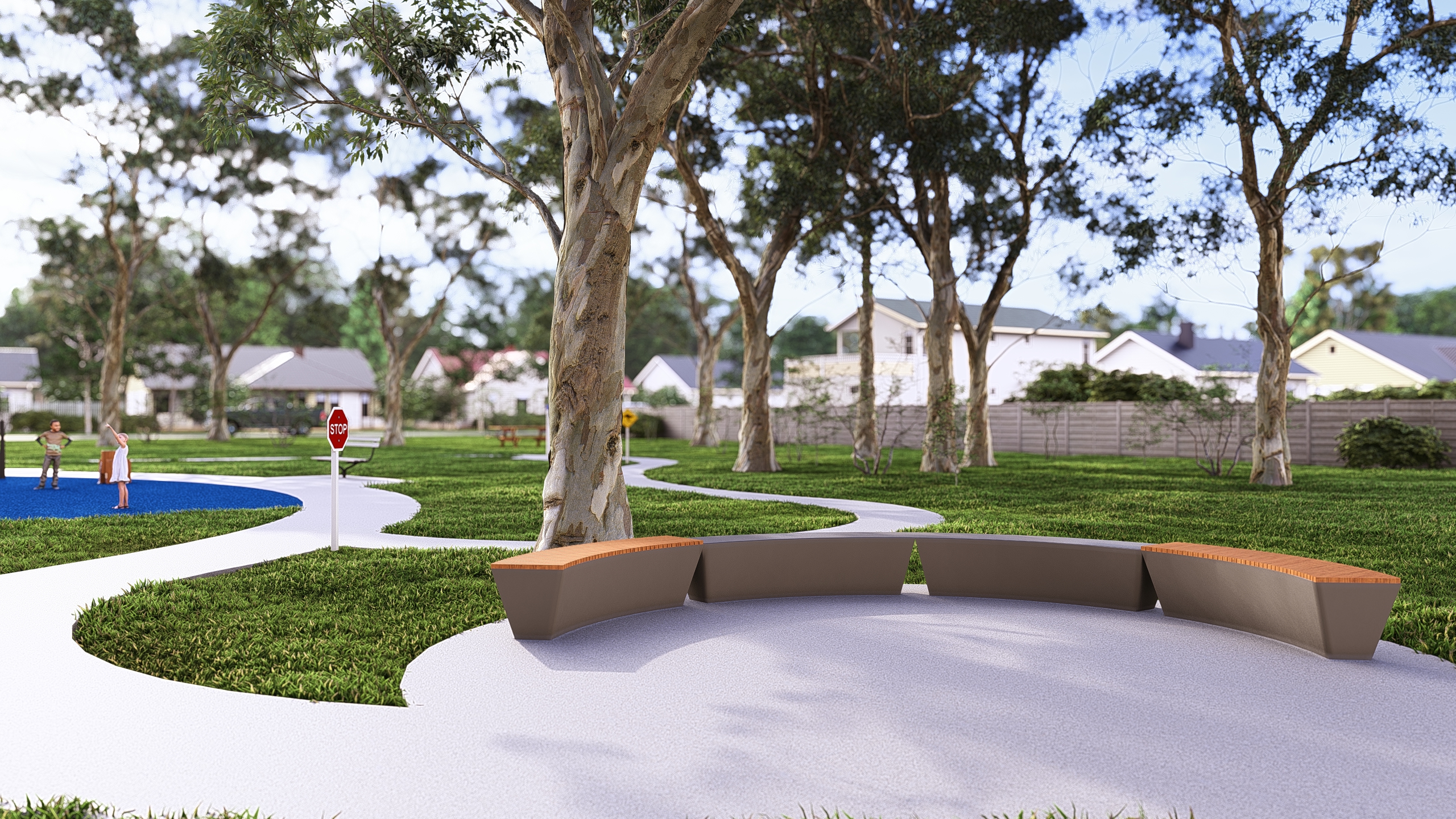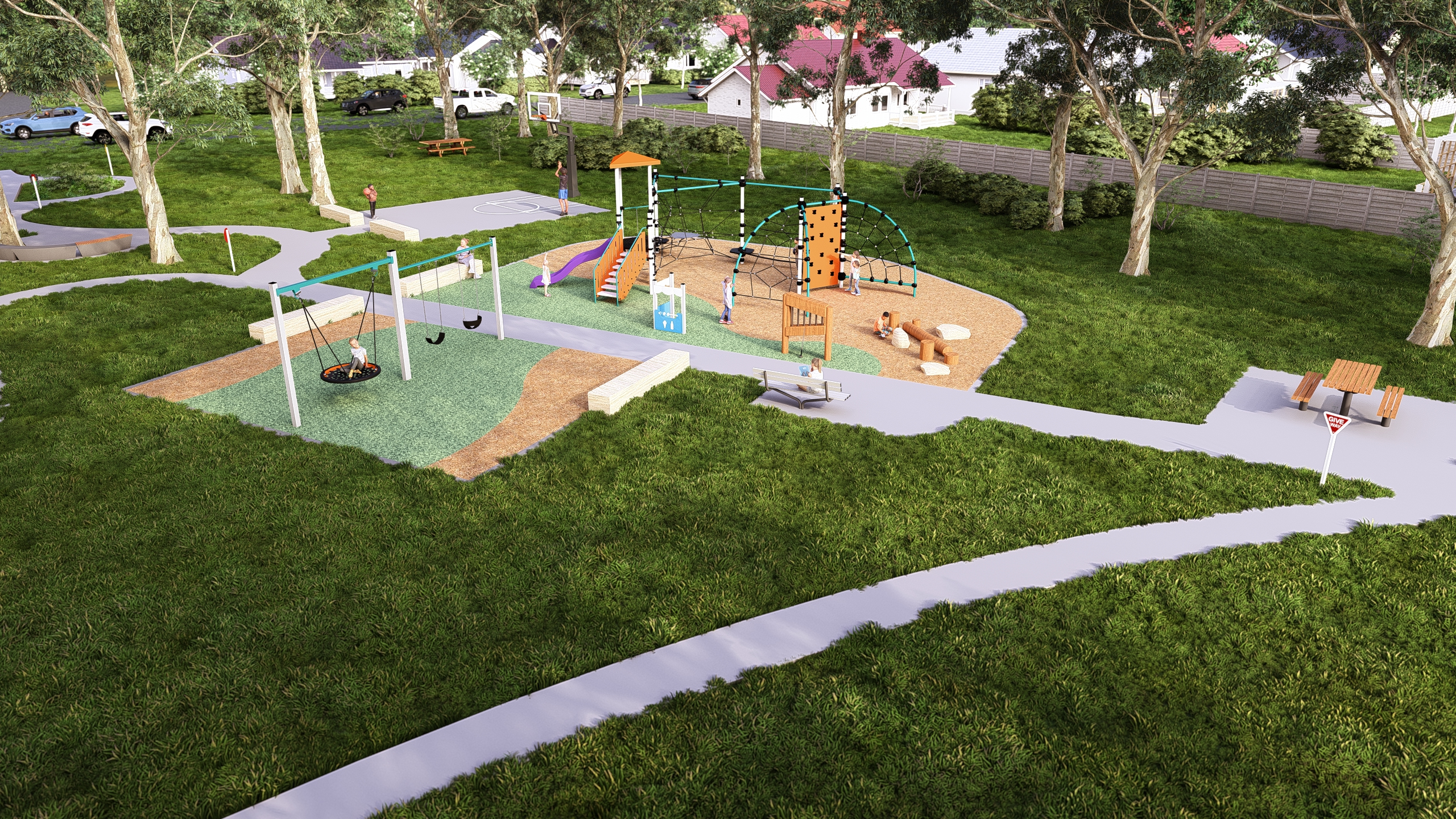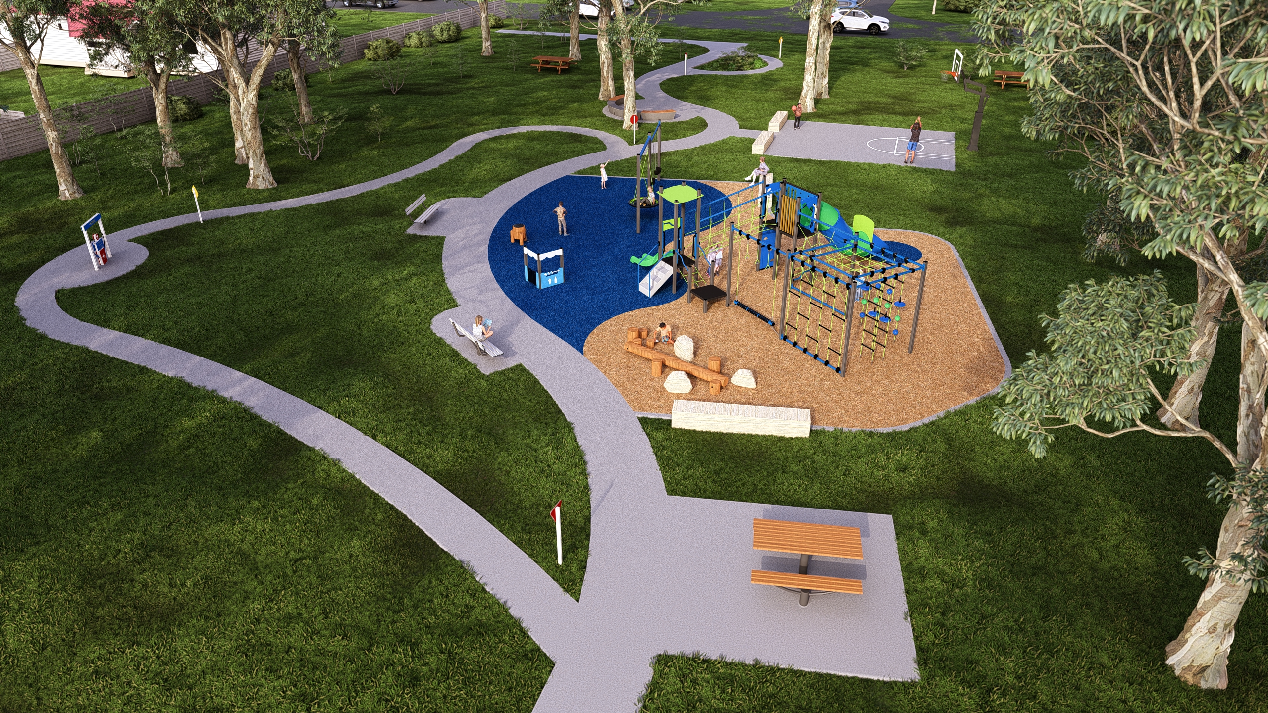 As part of the Neighbourhood Parks Program, the ageing play equipment will be renewed. Early ideas also include installing a new multi-use games area (MUGA) court near the tennis courts, adding informal sandstone seating between the two courts, formalising the existing ball wall near the clubhouse, and extending the footpath to improve access between play spaces.