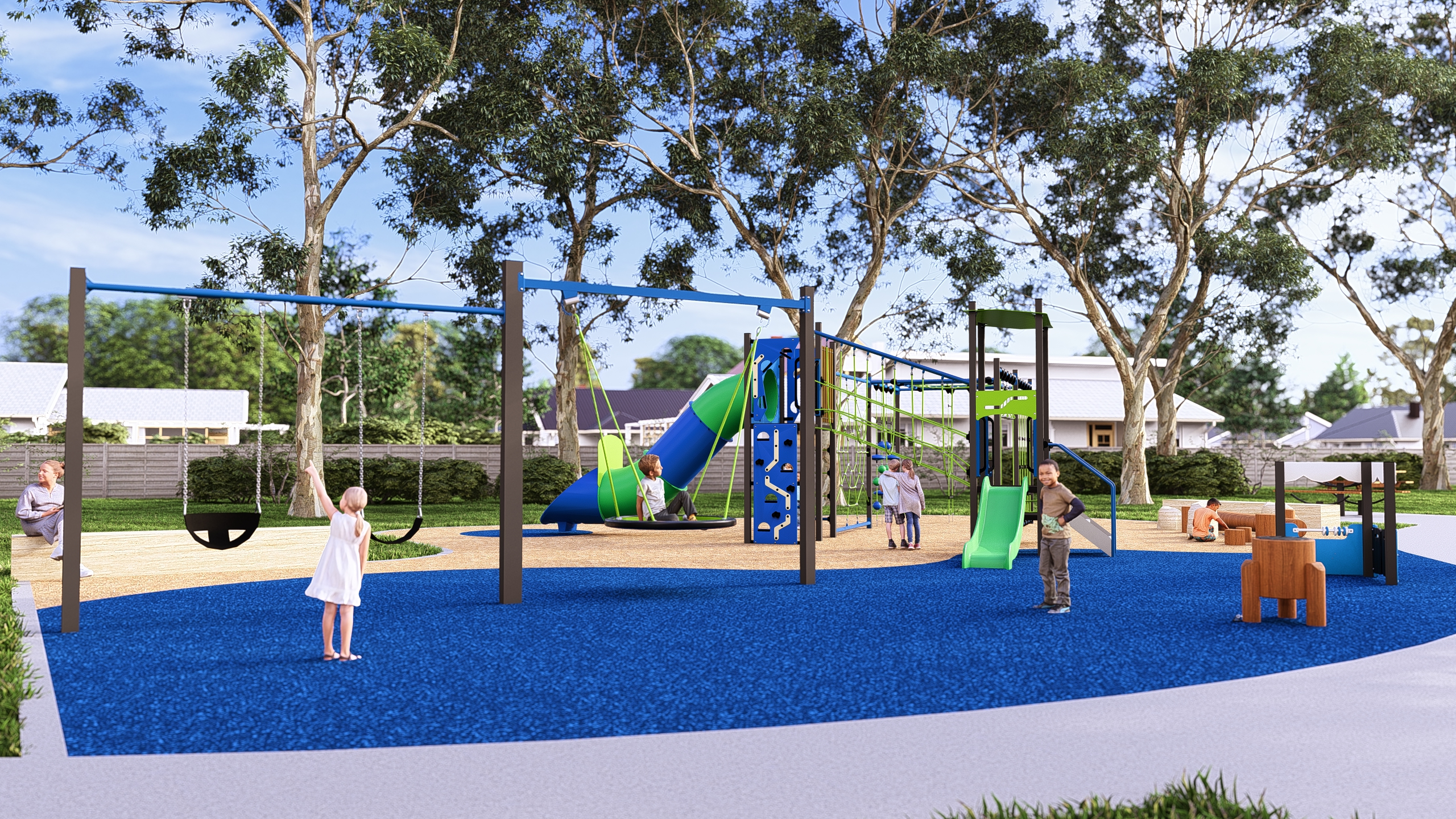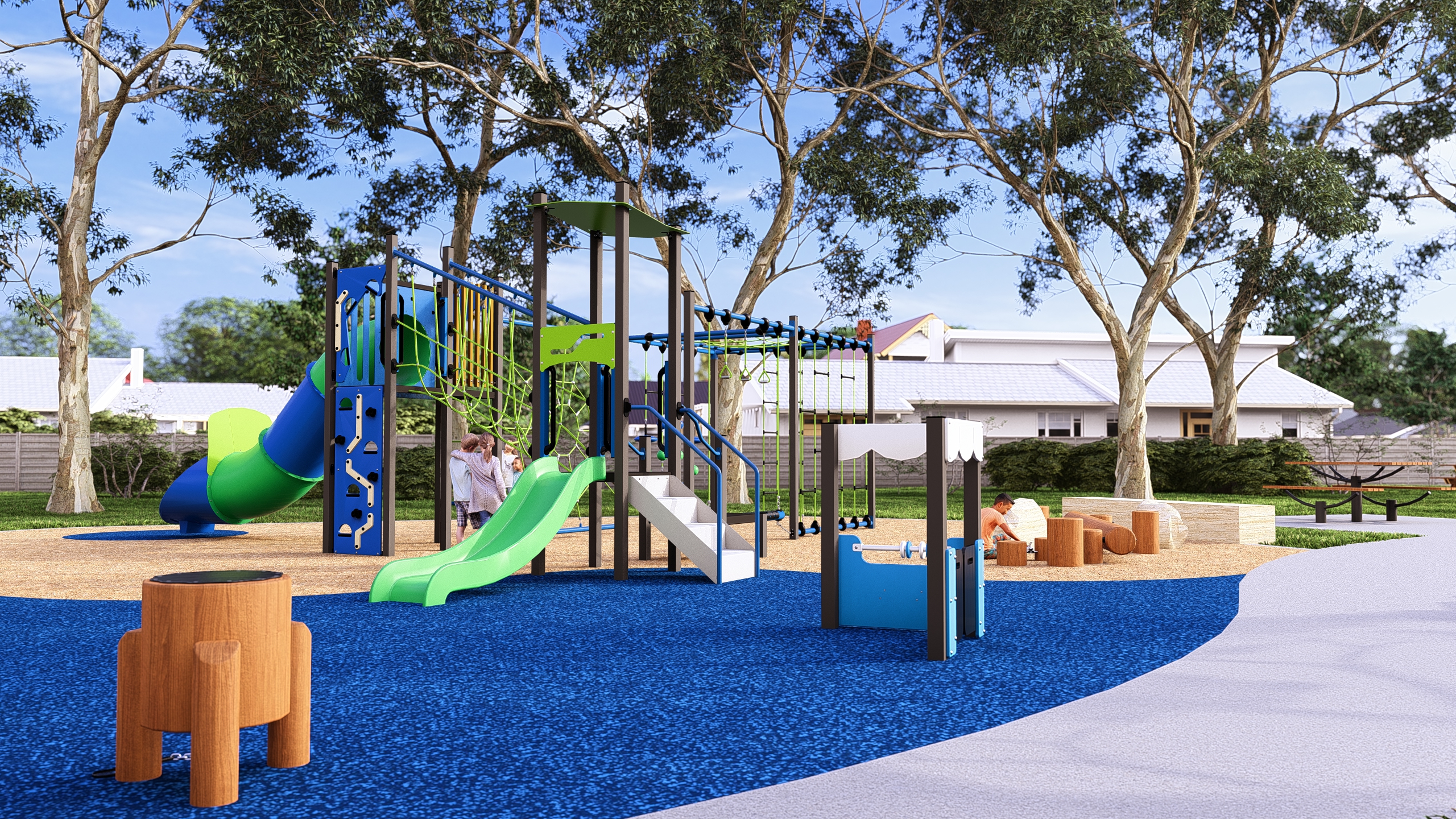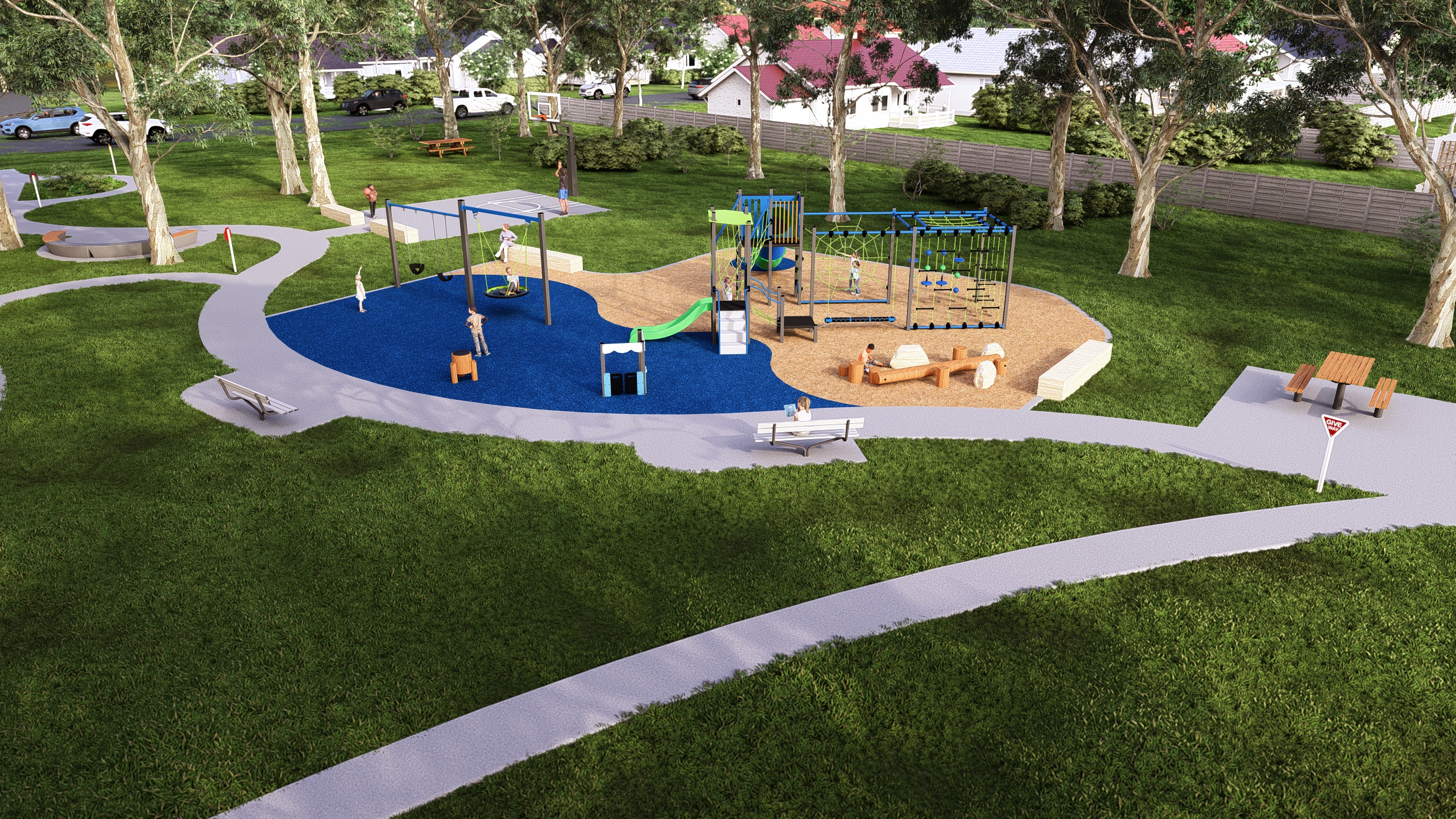 The survey results showed that the community strongly supports nature play elements using natural materials like timber and sandstone, reflecting the environment of the Mountains. The results also showed a desire to cater for children of a wide range of ages and abilities.