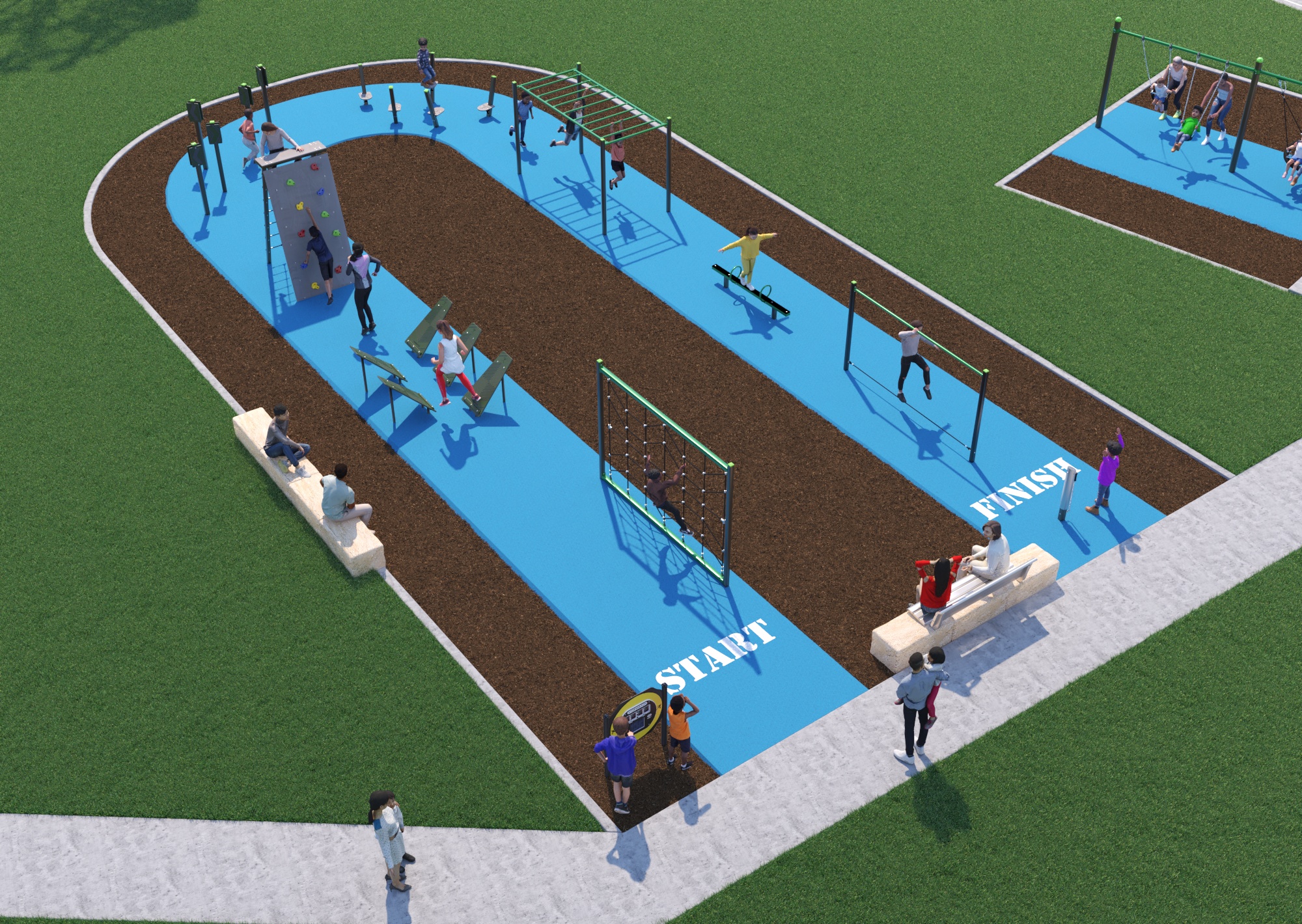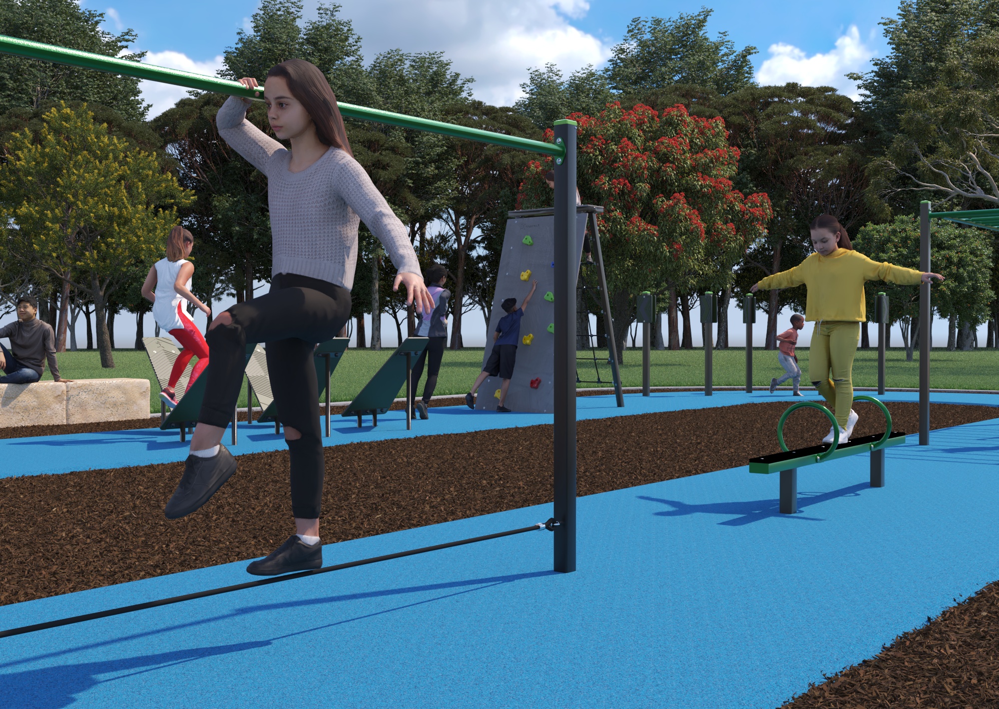 The two design have responded strongly to the consultation which showed how excited the youth community are about the possibility of a Ninja course. The survey results also showed a desire to cater for children of a wide range of ages and abilities. The benefit of a ninja course is that is suits a wide range of ages of people who can take the course at their own pace, learning confidence and developing strength and agility.