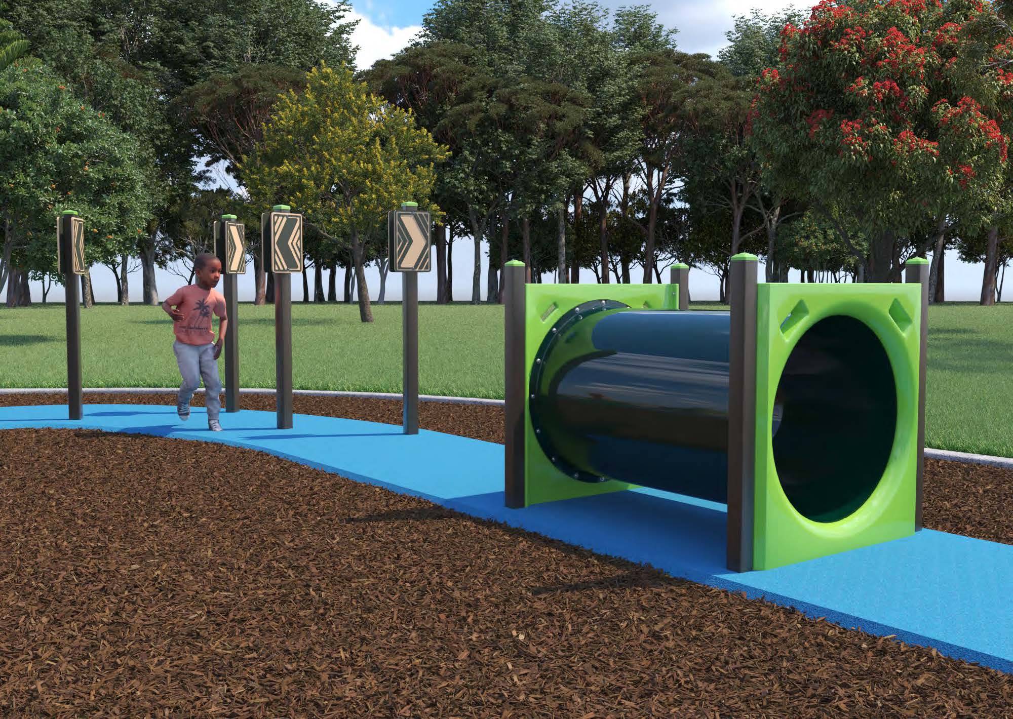 For both options, a path into the park will improve accessibility into the park from an accessible parking space on Bundah Road connecting to the new infrastructure. Accessibility of the play space will also be improved with a large area of rubberised soft fall.
