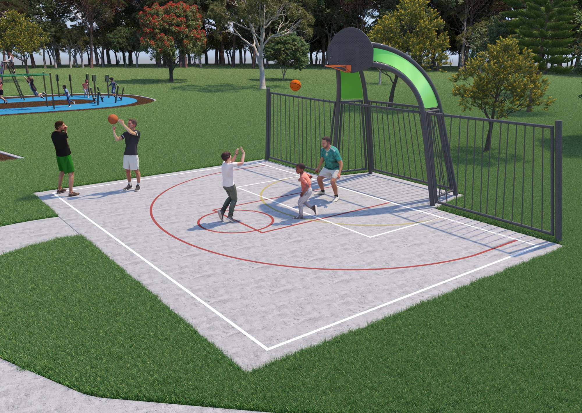 Option 2 has a smaller ninja course, but still an exciting offer, which is offset by the separate multi-use games area for practicing basketball, netball and soccer.